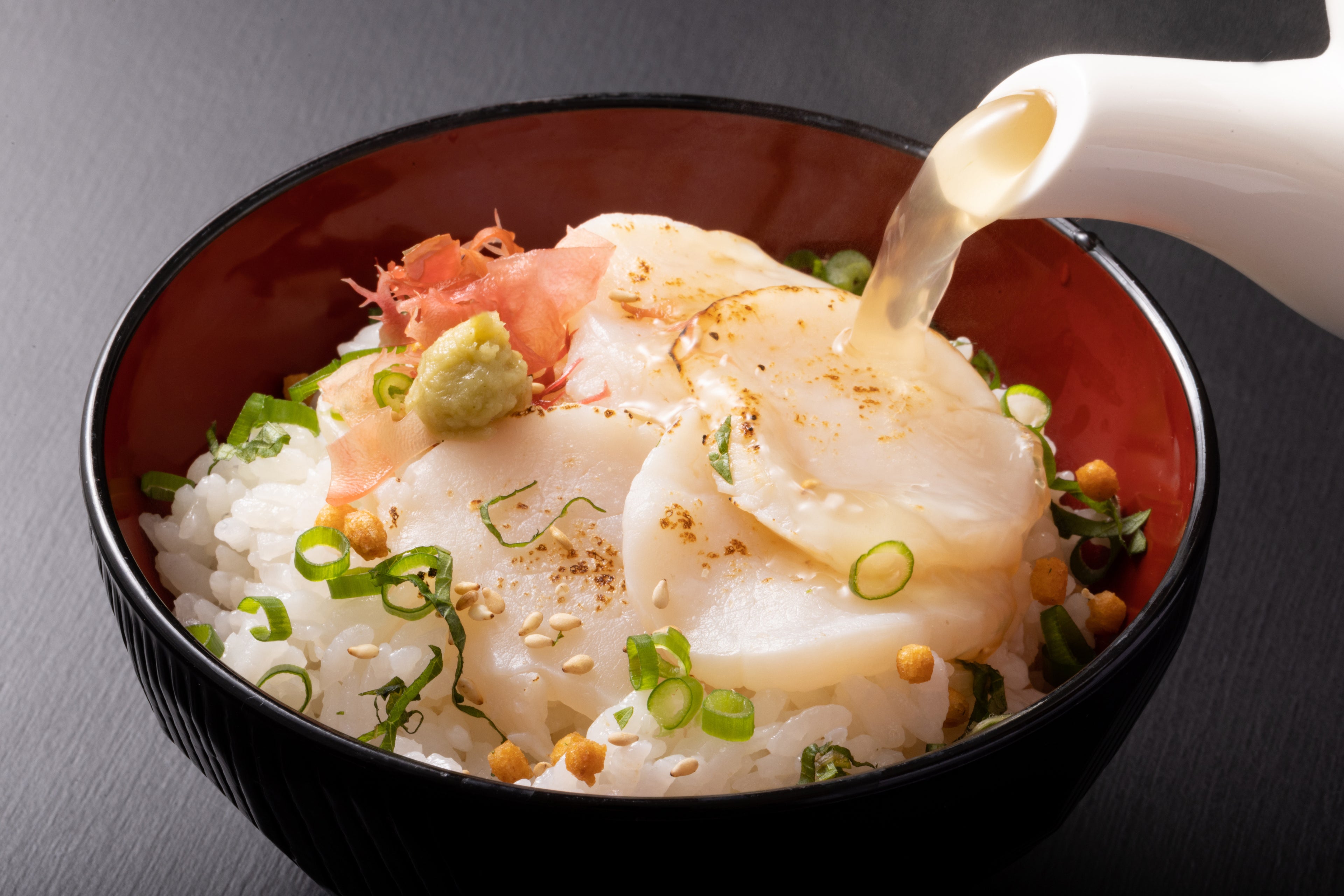 きゅういち自慢のほたて貝柱をお茶漬けに。