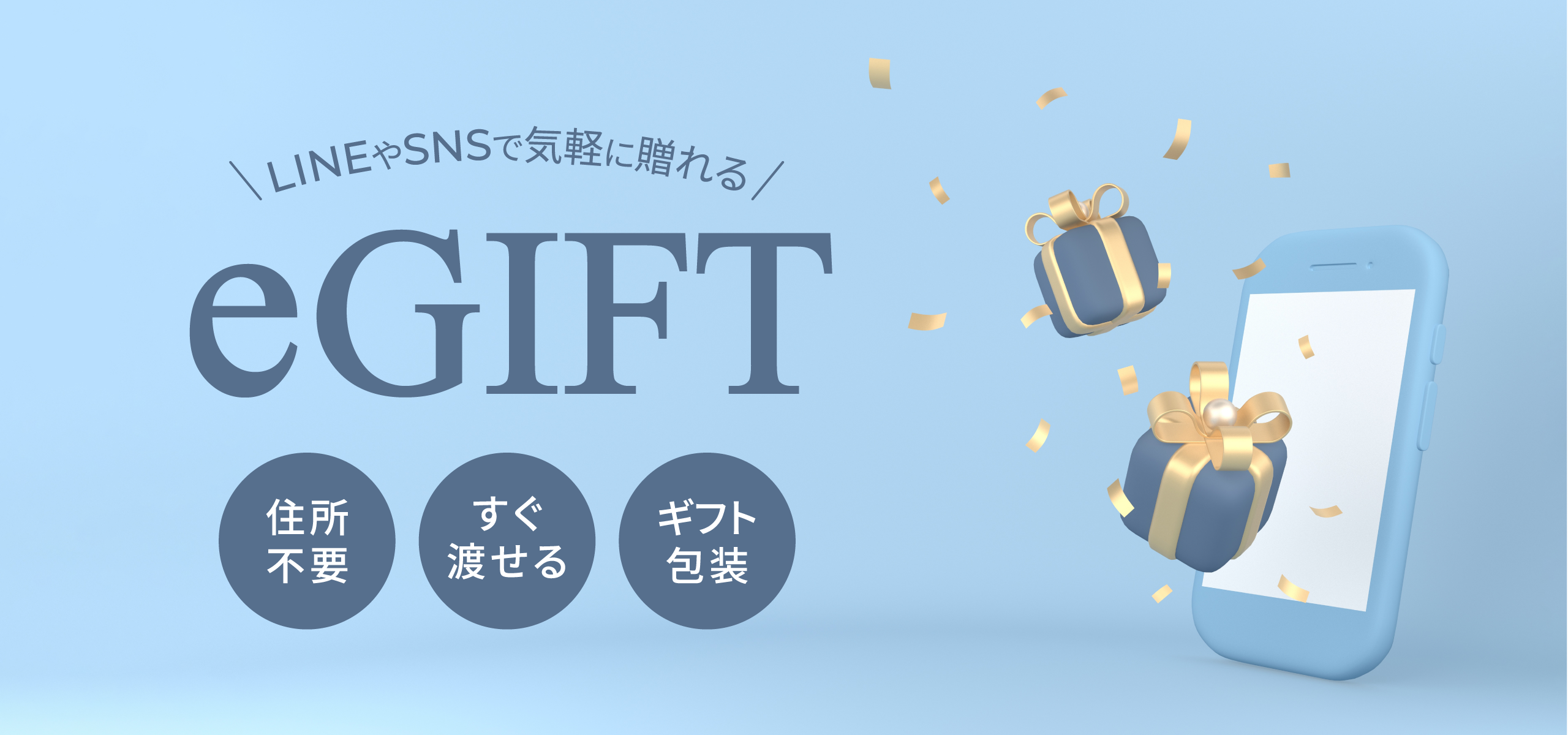 相手の住所不要で、LINEやSNSで「ギフトURL」を送ってプレゼントするサービスです。