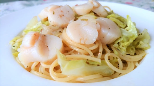 ほたてとほうれん草で《極旨♡ガリバタ醤油パスタ》